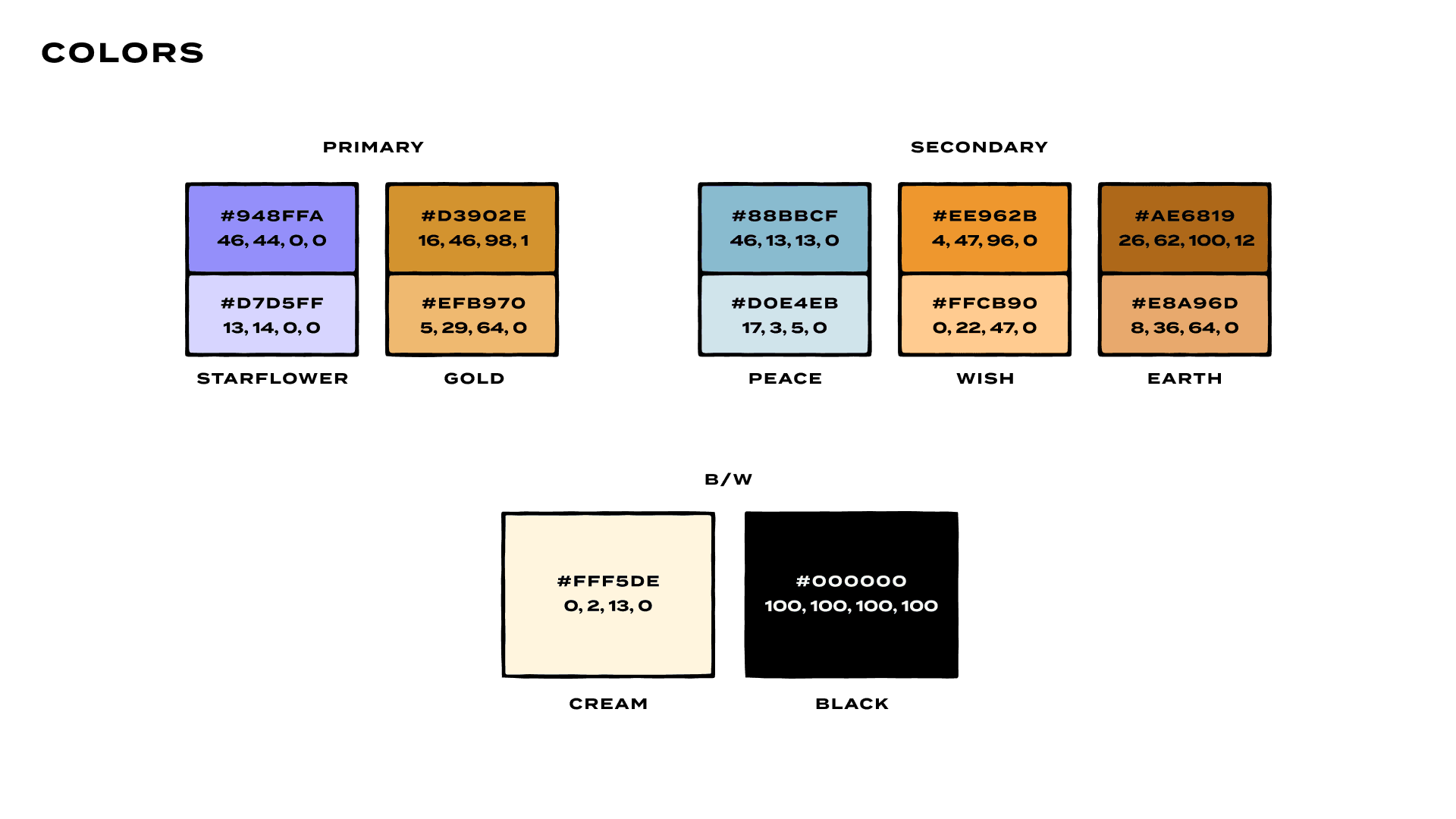 To capture the themes of warmth and magic, I selected a color palette of rich tones–Purple evokes spellcasting and starflower blooms, while yellow recalls sunlight and toasty coffee. The starflower typography was designed to stand out on the shelf, and communicate the warmth and character introduced by human craft.