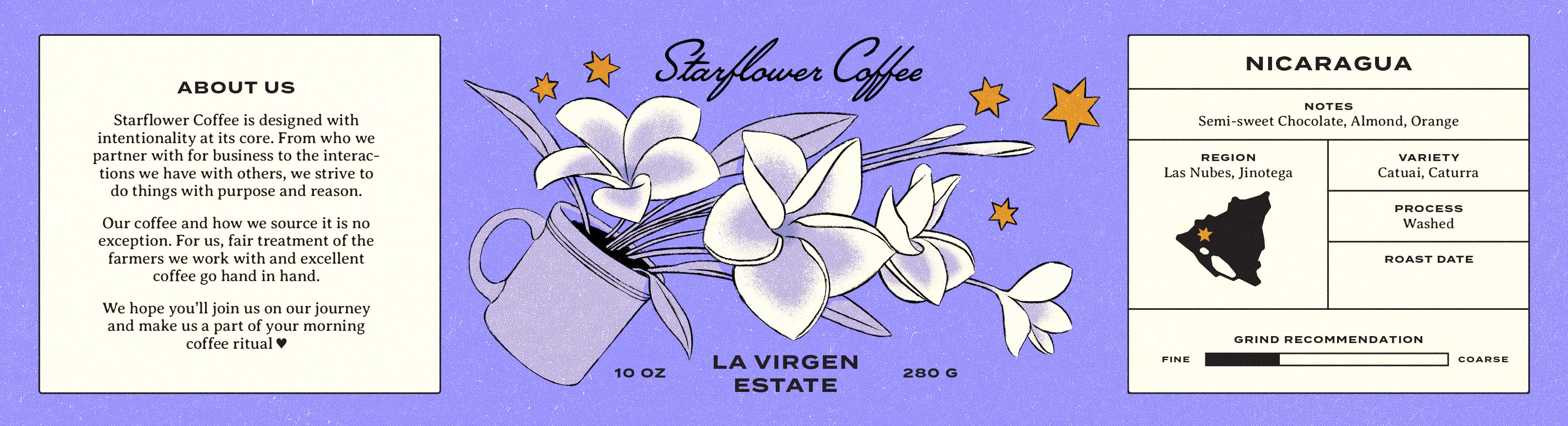 Starflower Coffee is a roaster based in Seattle that holds community and equity as core values. I created a visual identity that not only celebrates the magic of good coffee but also tells the story behind each cup.